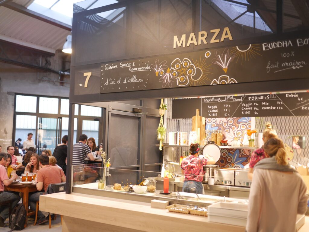 Ce soir là nous avions droit par exemple au “Avec plaisir – Burger du Chef”, “Trattino” cuisine bio et gourmande, “Les Fruits de Terre”, des gâteaux aux insectes ou encore “South India Foodie”… en tout c’est 11 échoppes ouvertes. Autant vous dire qu’il y en a vraiment pour tous les goûts.